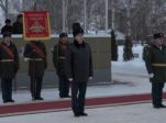 После возложения траурного венка и живых цветов к мемориалу — всех военнослужащих ждало торжественное мероприятие в актовом зале. С днём защитника Отечества свой личный состав поздравил командир бригады Александр Малков.