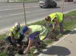 Сегодня на улице Московской, около автовокзала, сотрудники предприятия «Благоустройство» высаживали саженцы самого красивого и неприхотливого декоративного кустарника — розы «Робуста».