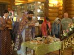 Несмотря на то, что сегодня рабочий день, в храме Петра и Февронии много людей. Каждый принес с собой для освящения баночку мёда — источник природных витаминов.