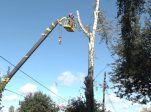 Деревья у домов №№57 и 63 в поселке Механизаторов в последнее время приносили местным жителям только проблемы. Во время сильного ветра отламывались ветки, да и вообще казалось, что зеленый «исполин» вот-вот упадет. Сегодня рабочие ликвидируют аварийные насаждения.